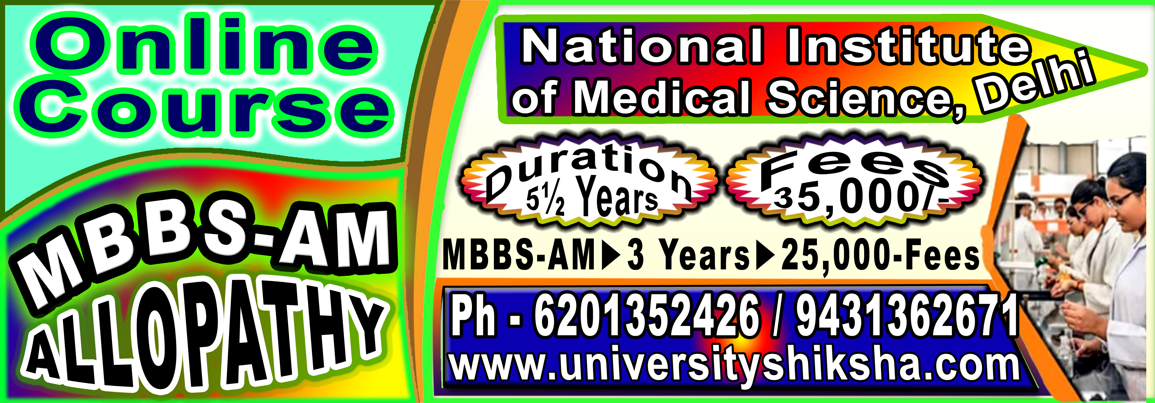 Student's are Online / Virtual devised These Medical Curriculam / Modules to Ingress in Govt. Approved Medical Institutions according to Govt. Medical Terms/ Circullar / Rules & Regulations . MBBS-AM cognomen is the only emblem of Medical Mock Test Course. Any student / person may join Online / Virtual to RE & UP SKILL his talent. No Age Bar / Restriction.
